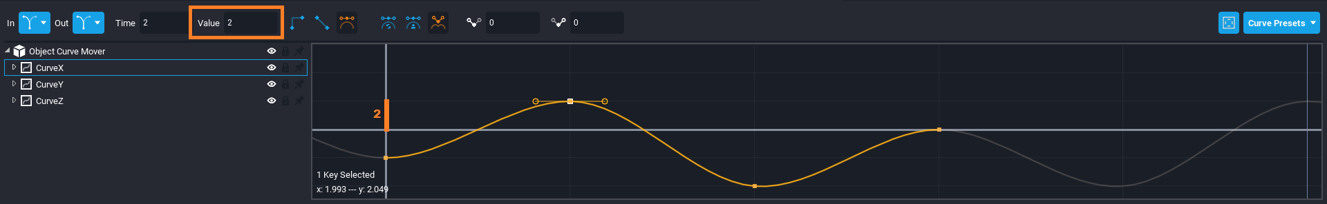 Cubic Interpolation | The value will use a cubic algorithm to transition to the next keyframe |