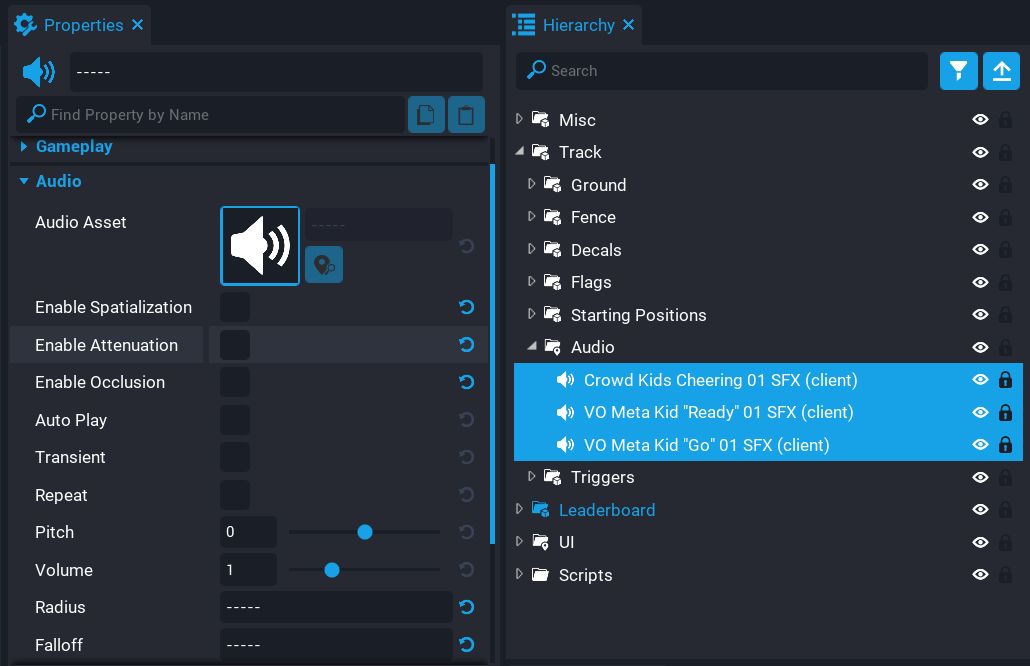 Next, you need to add the audio and finish line trigger as custom properties on the RaceManager_Client script.