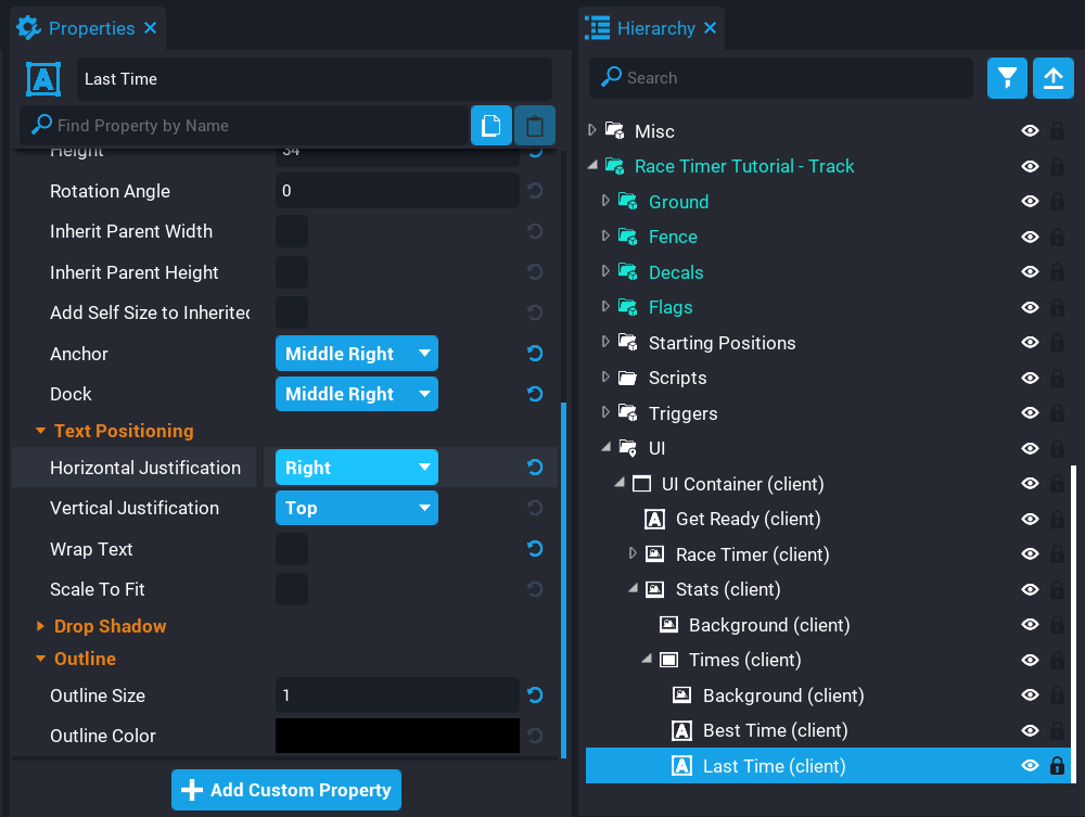 Create a new script called RaceManager_Server and place the script you created into the Server Context folder. Before opening the script, you need to setup the custom property for the positions so Lua has access to them.