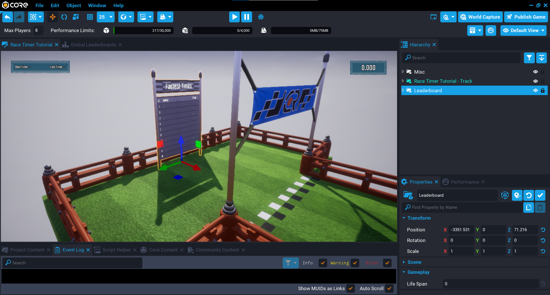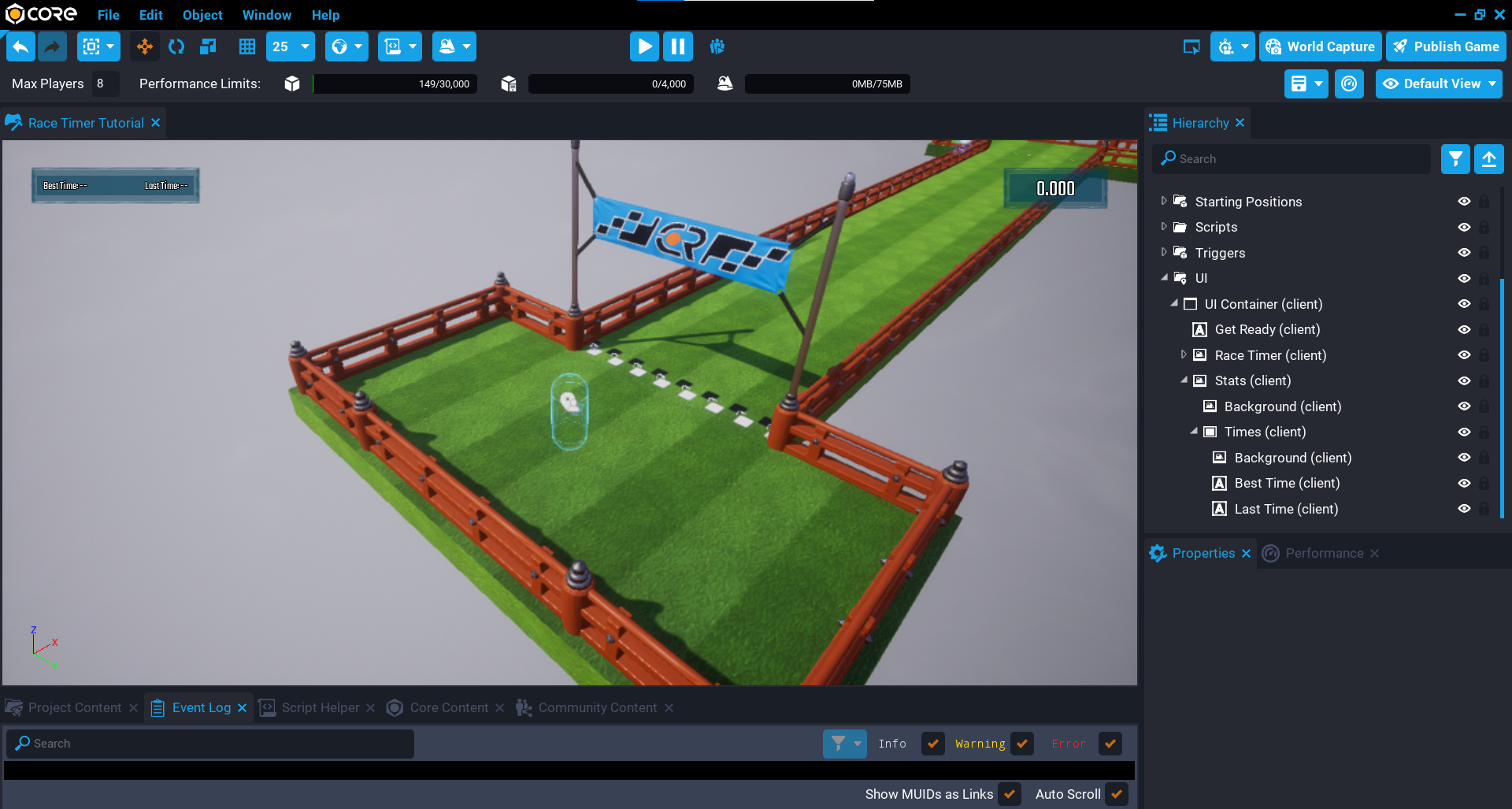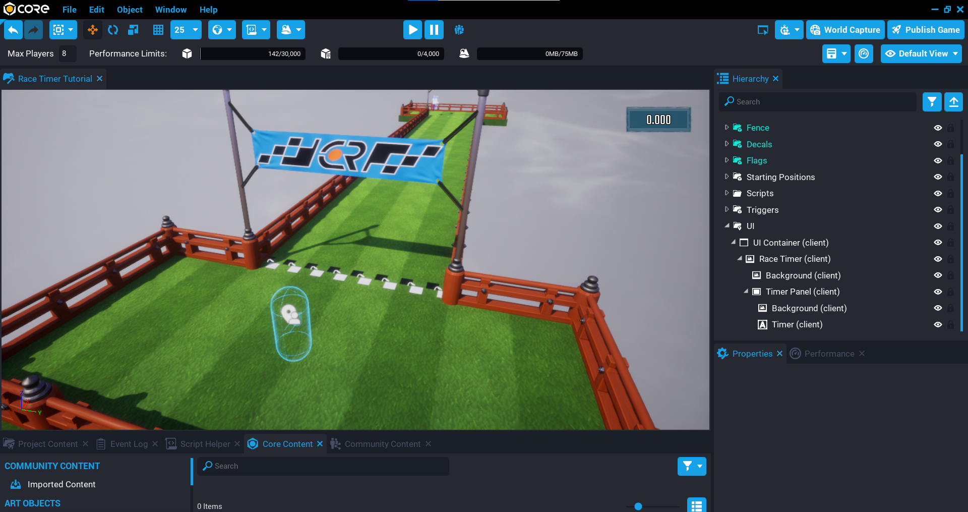 In this tutorial you are going to explore more of the Core API to make a race timer for a multiplayer game from start to finish.