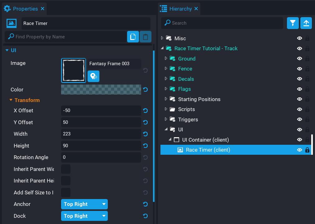 3. Drag and drop the template Race Timer Tutorial - Track into the Hierarchy.