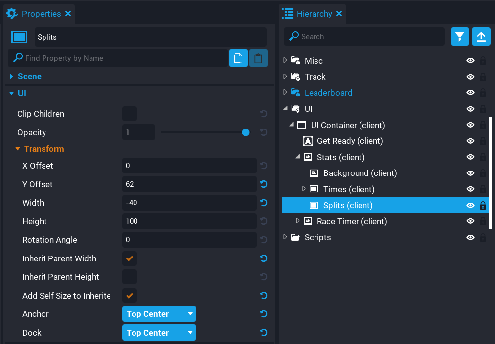 Finally you need to update the height of the Splits panel. This is easily done by grabbing the existing height of the panel and adding the total number of children (triggers) times the height. The height of 42 includes the spacing between each entry.